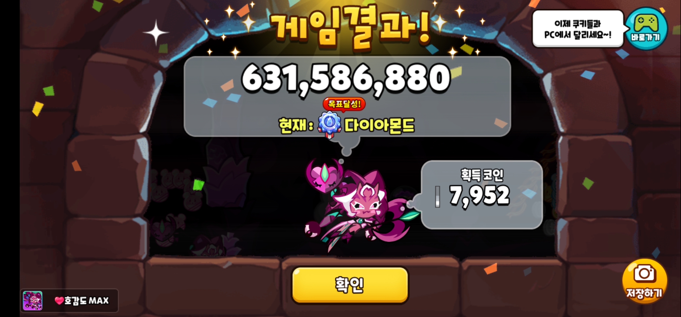 아이템 모으는데 시간이 많이 걸리다 보니 쿠키의 도전도 늦게 클리어 하게 되네요~~